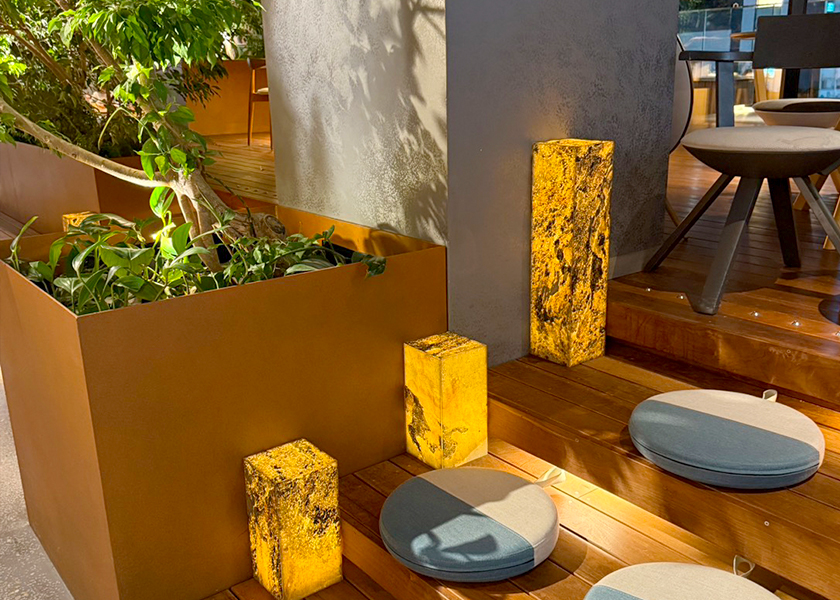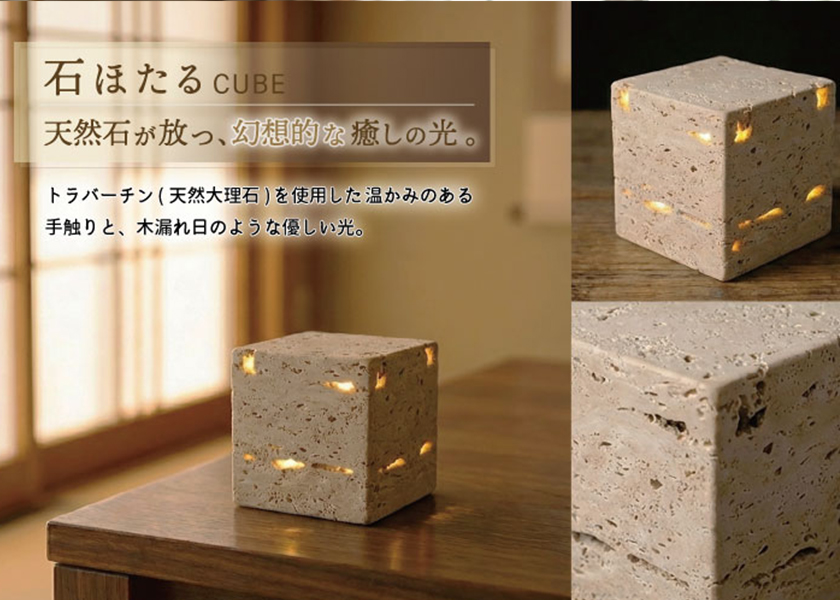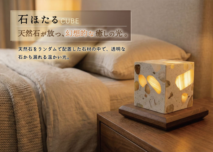 自然石の高級感を活かした充電式ライト:石材の裏側から照らす、幻想的な空間を演出します。